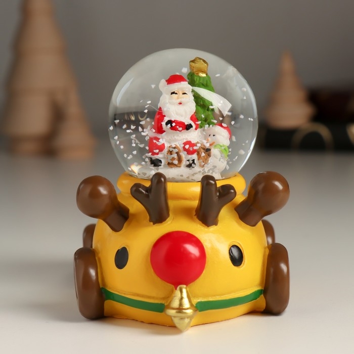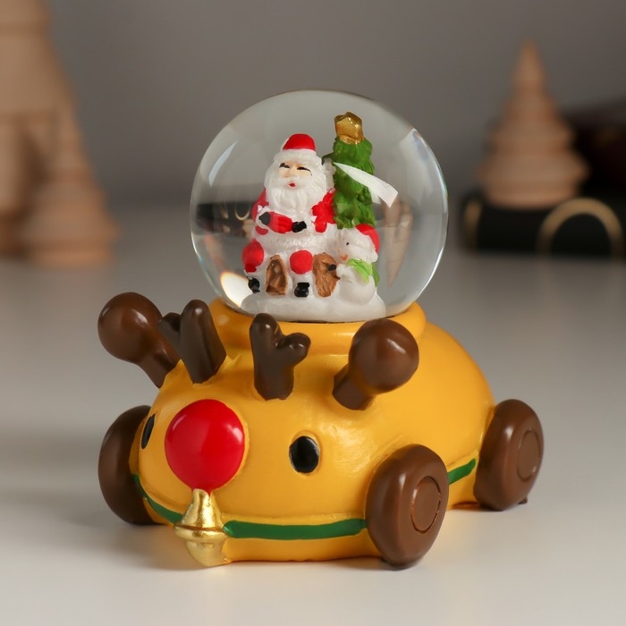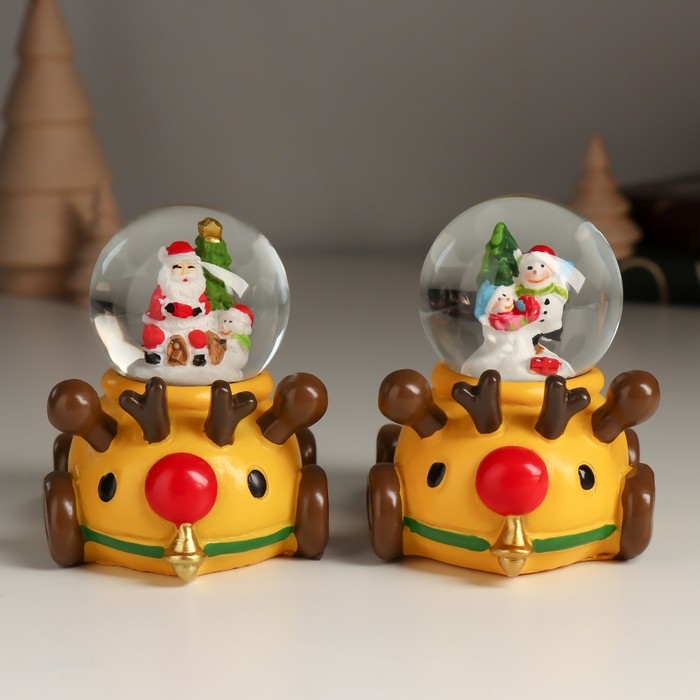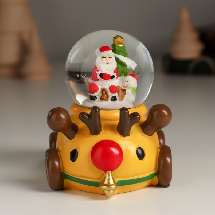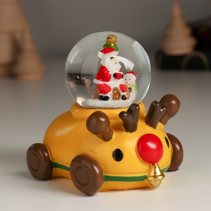 Сувенир полистоун водяной шар "Дед Мороз/Снеговик на лосемобиле" МИКС 8,5х6,5х8 см