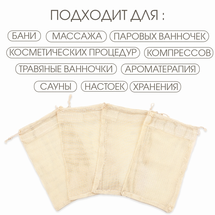 Принимая процедуры с использованием этих запарок, вы не только расслабитесь и насладитесь приятным ароматом, но и укрепите свое здоровье. Такие мешочки идеально подходят для использования в бане, сауне или домашней ванной. Просто наполните мешочек сбором трав, опустите мешочек с травами в чан с водой, дайте им настояться 15-20 минут, плесните травяной настой на камни печи или влейте в ванну с комфортной для вас температурой воды и наслаждайтесь ароматическим паром и полезными свойствами трав. Мешочки для запарки подарят вам незабываемые моменты релаксации и ухода за собой.