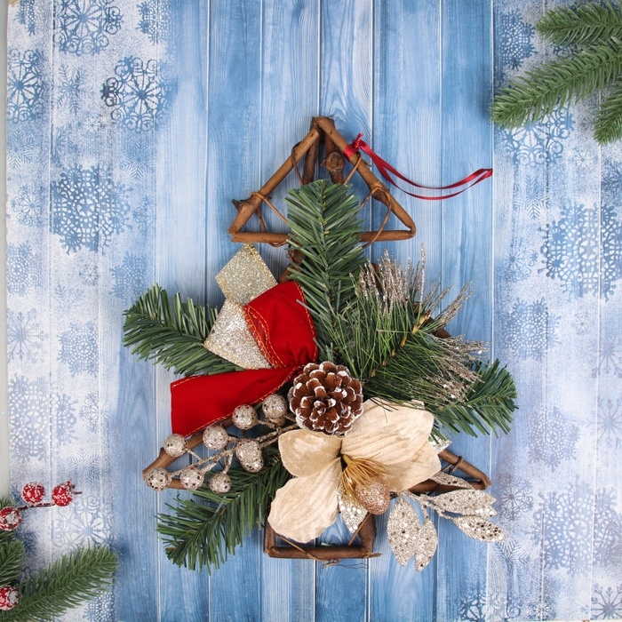 Украшение ёлочное "Магнолия золотая на ёлке" 31х24 см