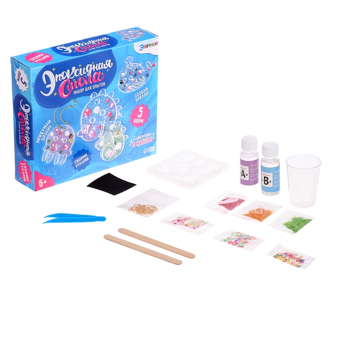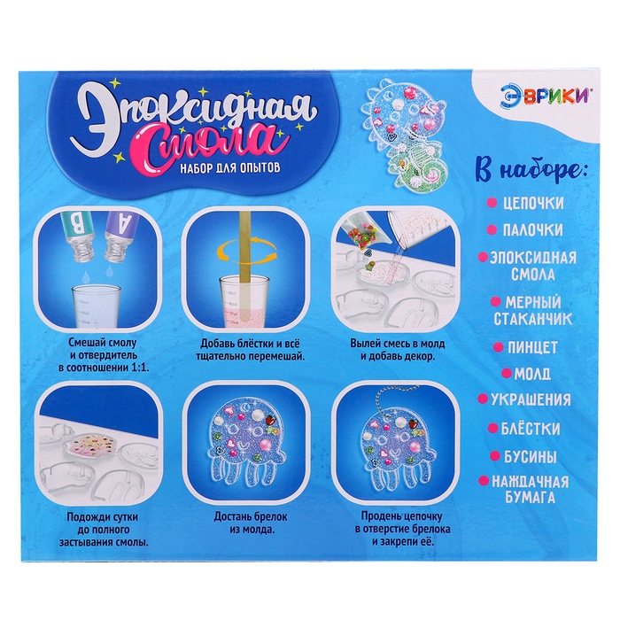 Набор для опытов «Эпоксидная смола» — идеальное решение для занятия творчеством! Ребёнок проведёт увлекательный эксперимент и создаст уникальные украшения из эпоксидной смолы!
