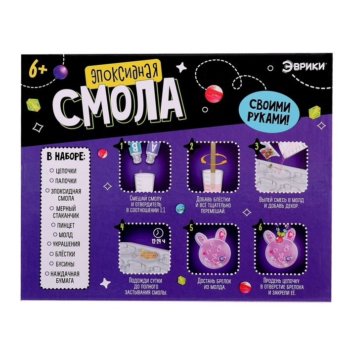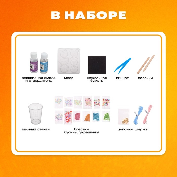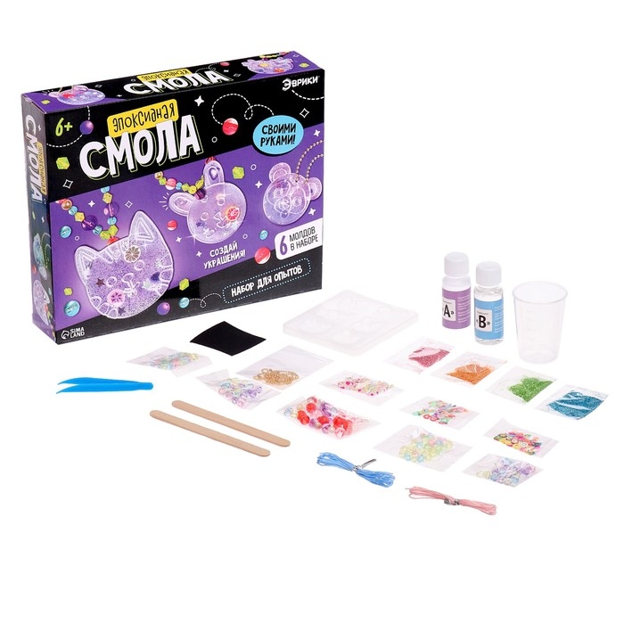 Набор для опытов «Эпоксидная смола» — идеальное решение для занятия творчеством! Ребёнок проведёт увлекательный эксперимент и создаст уникальные украшения из эпоксидной смолы!