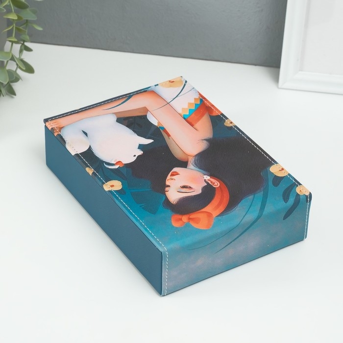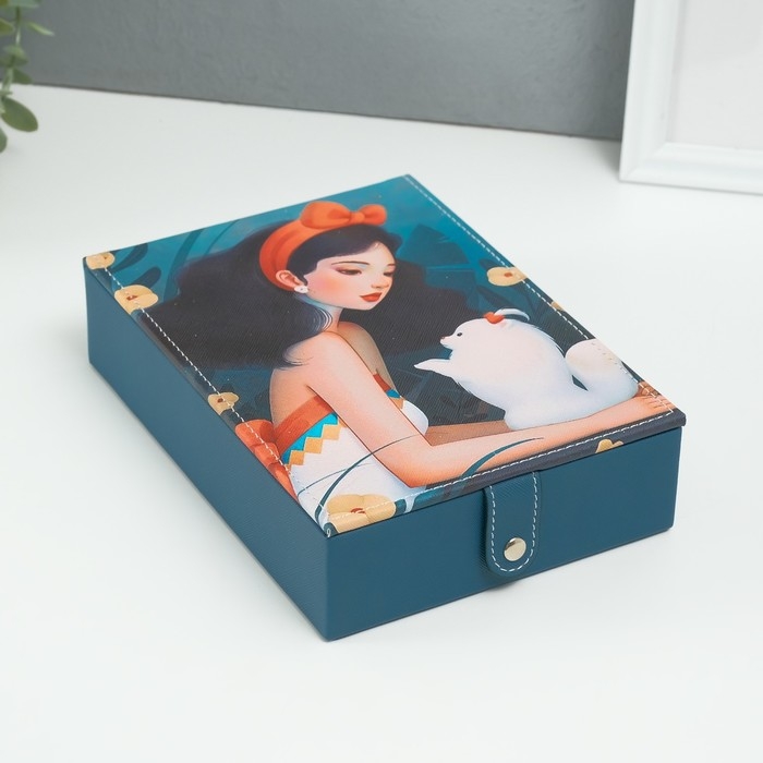 Шкатулка кожзам для украшений с зеркалом "Девушка со шпицем" 15х21,5х5,5 см