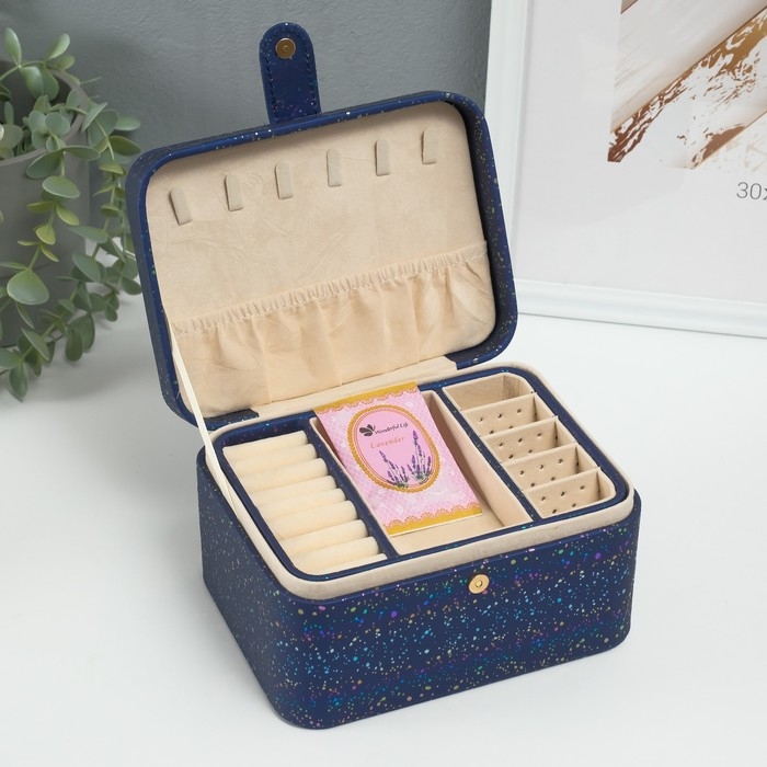 Шкатулка кожзам для украшений "Ночное небо" голография фиолет 14х18х10,5 см