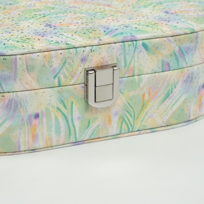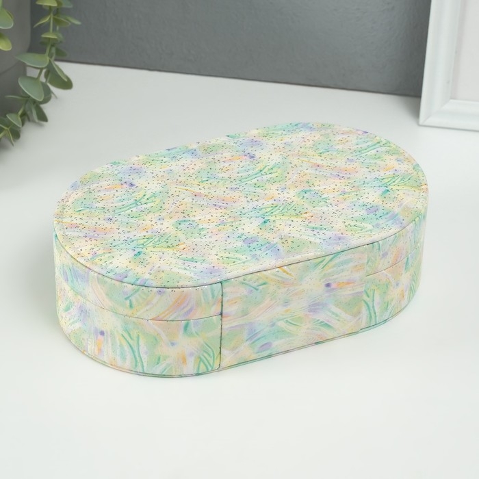 Шкатулка кожзам для украшений "Мазки краски" серебристые точки зелень 13,5х22,5х6,5 см