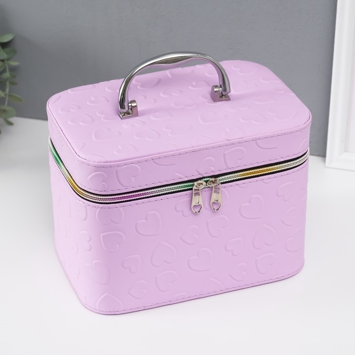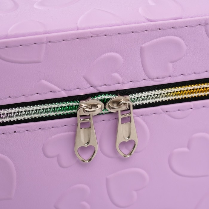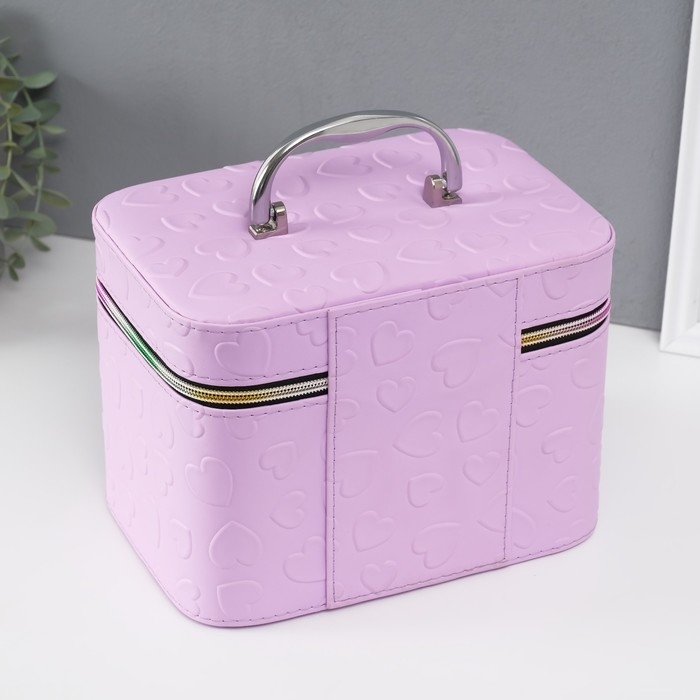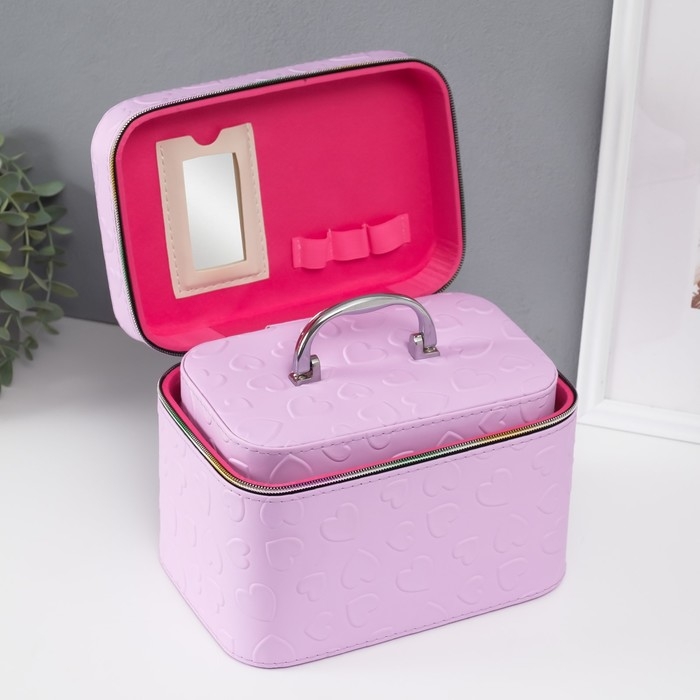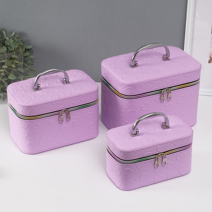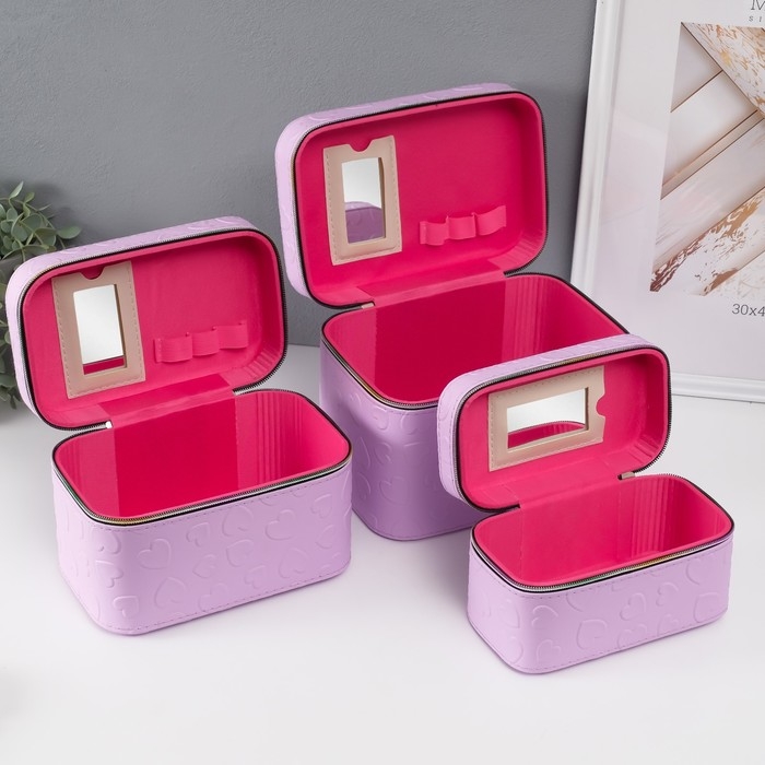 Шкатулка кожзам с зеркалом "Сердца" св-сирень набор 3 шт 19х10,5х10,5 21х13х14 15х23х17 см