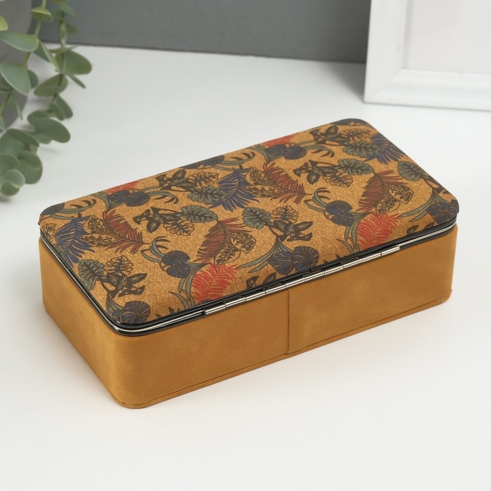 Шкатулка кожзам для украшений "Пальмовые листья" пробка 10х18х6 см