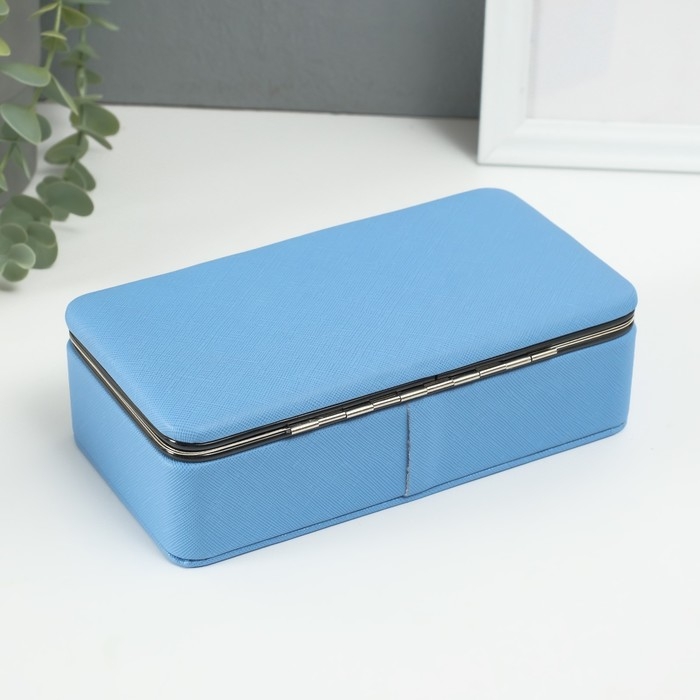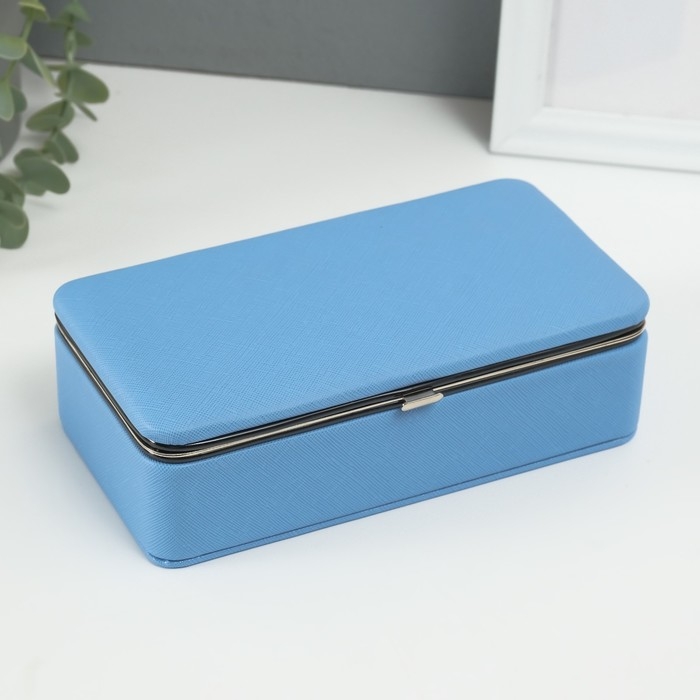 Шкатулка кожзам для украшений "Мелкая рябь" сине-голубая 10х18х6 см