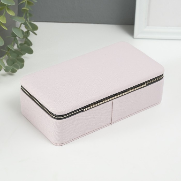 Шкатулка кожзам для украшений "Мелкая рябь" бледно розовая 10х18х6 см