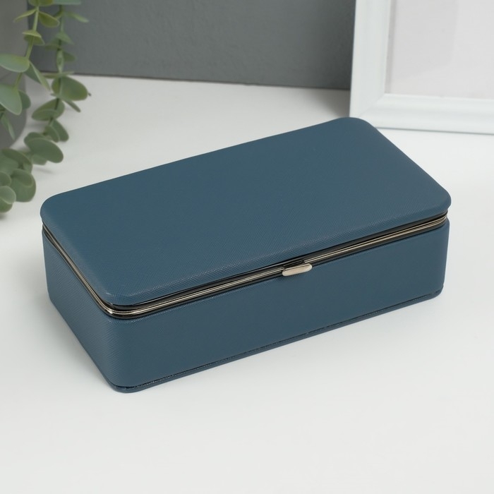 Шкатулка кожзам для украшений "Мелкая рябь" сине-серая 10х18х6 см