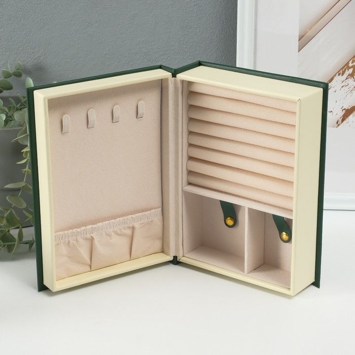 Шкатулка кожзам для украшений "Магическая книга" тёмно-зелёная 15,5х21,5х7 см