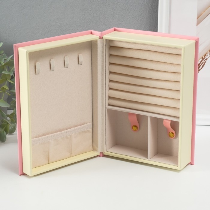 Шкатулка кожзам для украшений "Магическая книга" розовая 15,5х21,5х7 см