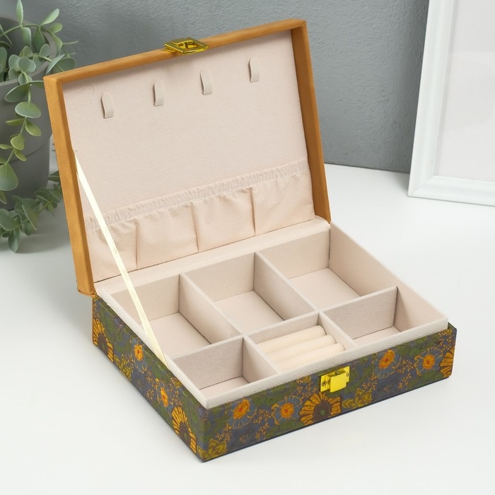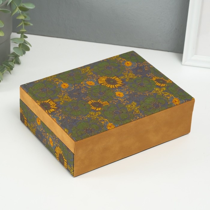 Шкатулка кожзам для украшений "Подсолнухи" пробка 16,5х21,5х7 см