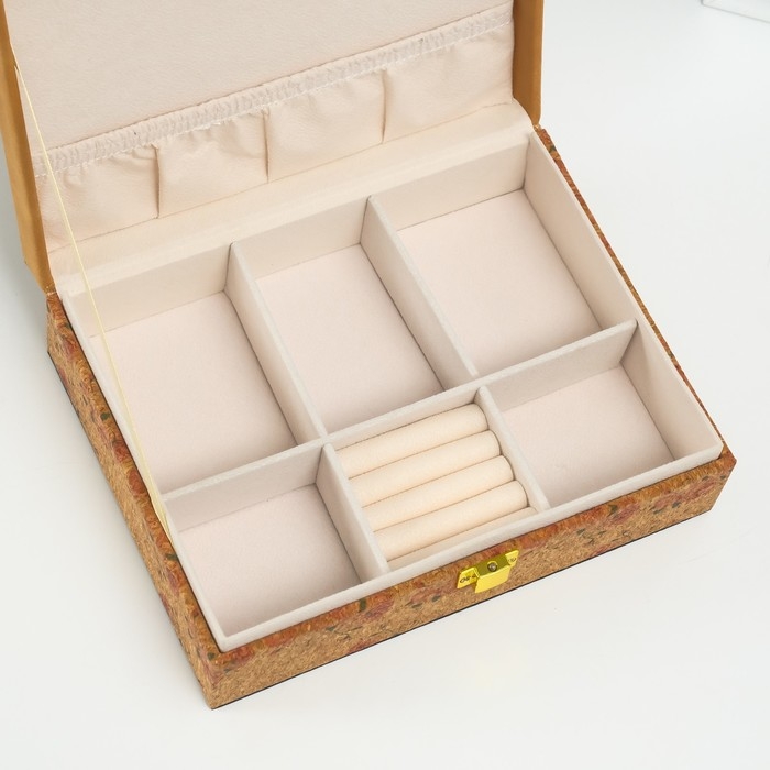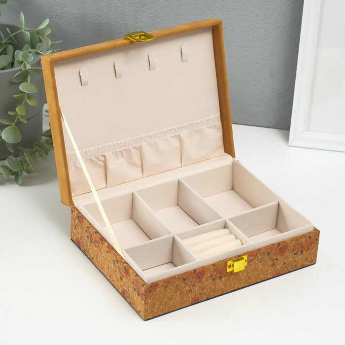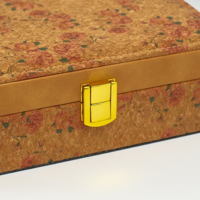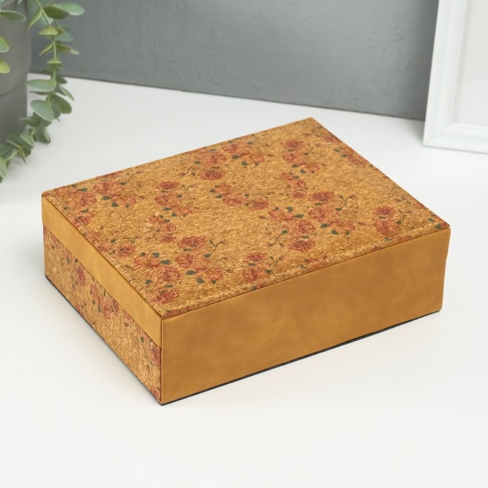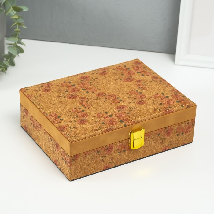 Шкатулка кожзам для украшений "Нежные розы" пробка 16,5х21,5х7 см