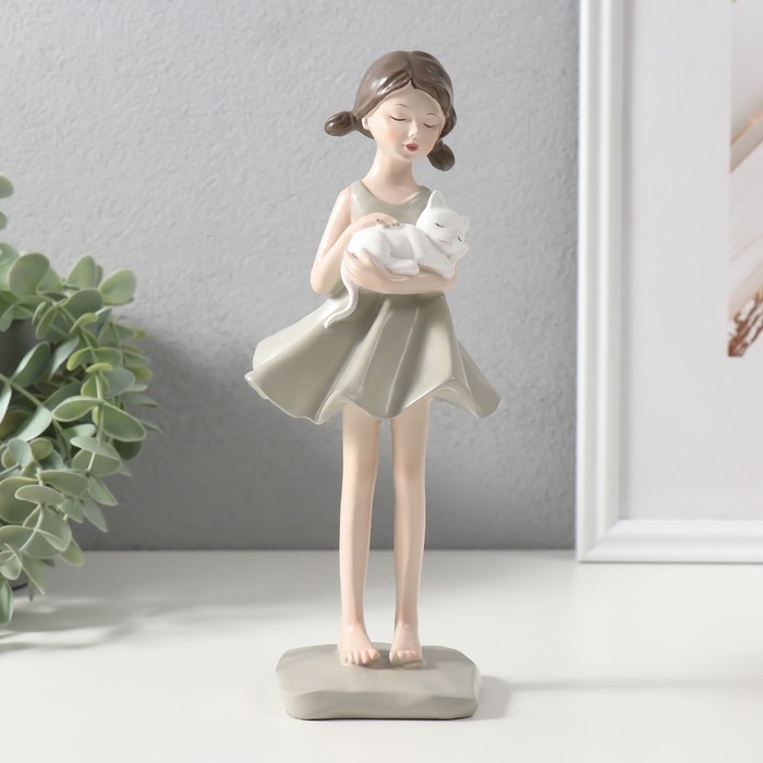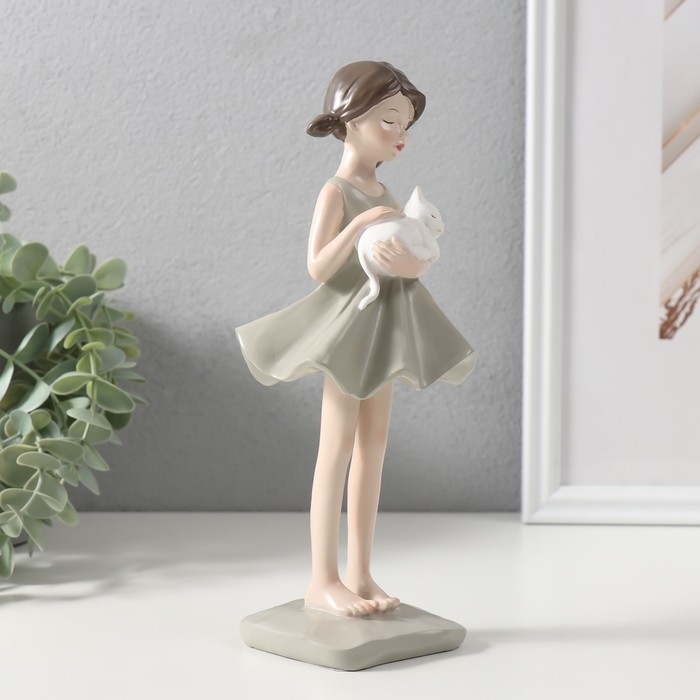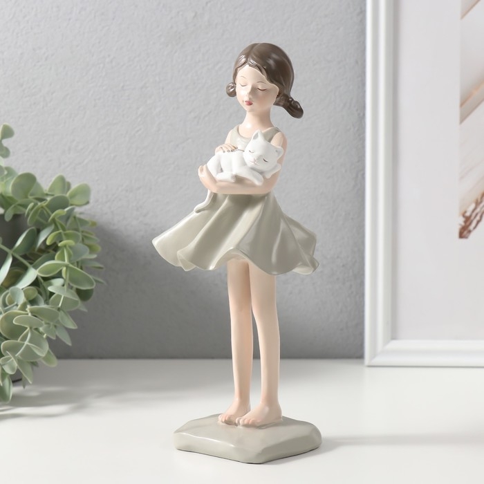 Сувенир полистоун "Девочка в платье с кошкой на руках" 9,9х8,7х23,1 см