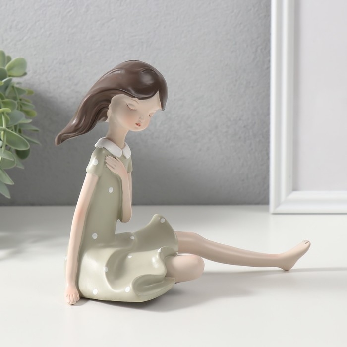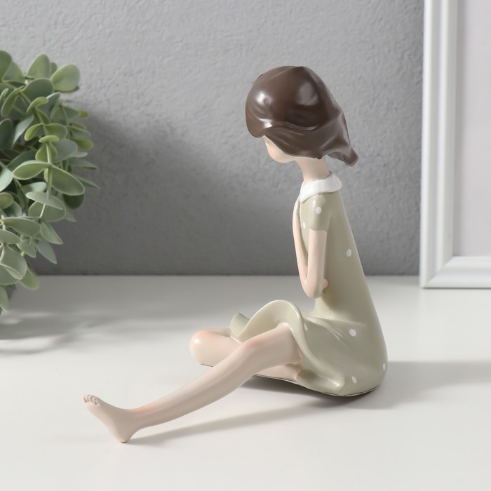 Сувенир полистоун "Малышка в зелёном платье в горошек" 19х9,5х14,5 см