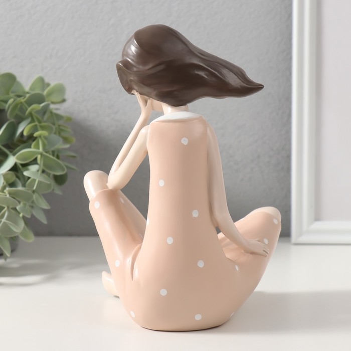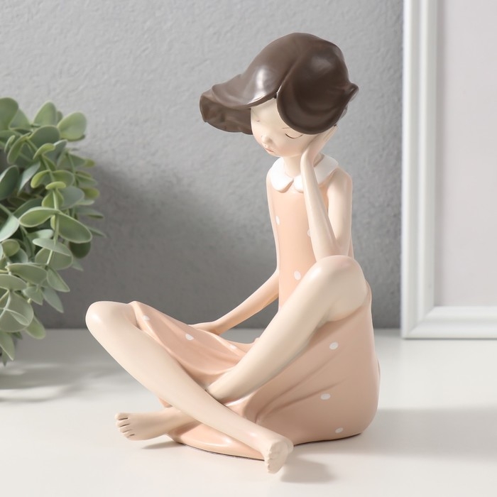 Сувенир полистоун "Малышка в персиковом платье в горошек" 14х11,5х19 см