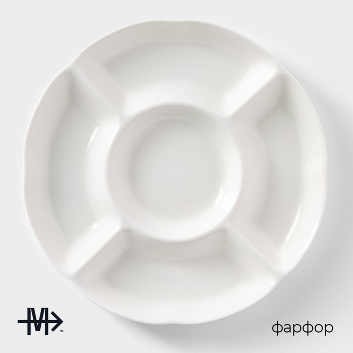 Менажница фарфоровая 5 ячеек Magistro «Бланш», 24,7×24,5×2,7 см, цвет белый