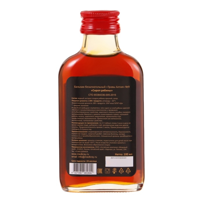 Состав: водный экстракт плодов рябины, сахар.
