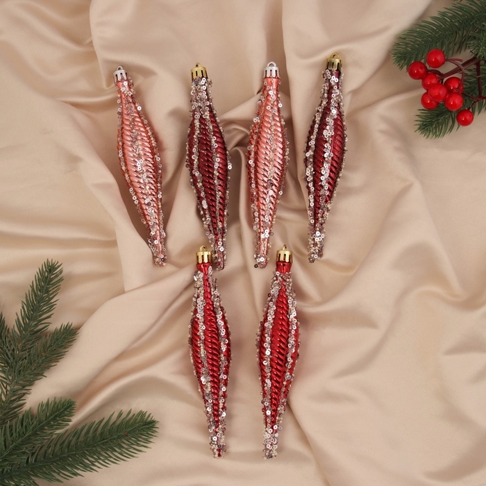 Украшение ёлочное "Сосулька нить блеск" (набор 6 шт) 15.5х3 см, розовый красный