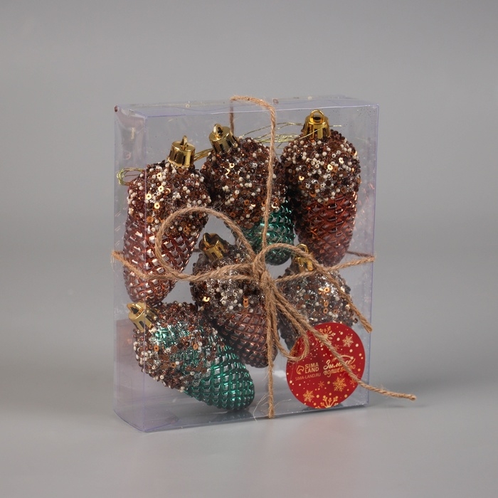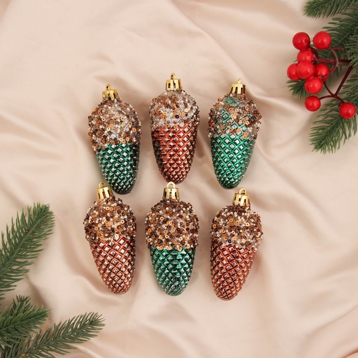 Украшение ёлочное "Шишка Феерия" (набор 6 шт) 8х3,5 см, зелёно-золотой