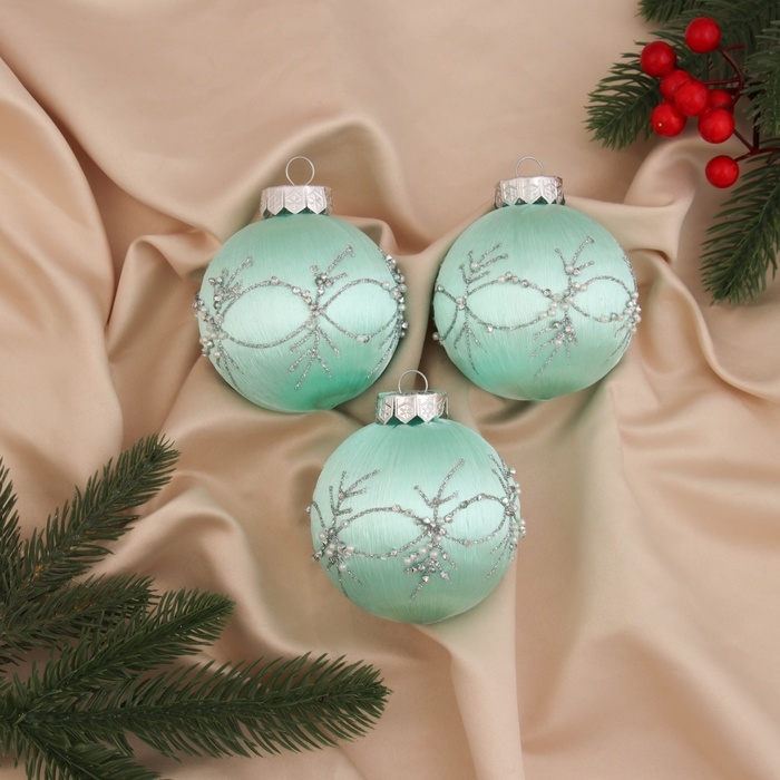 Набор шаров пластик d-8 см, 3 шт "Хайдвин" нежность, зелёный