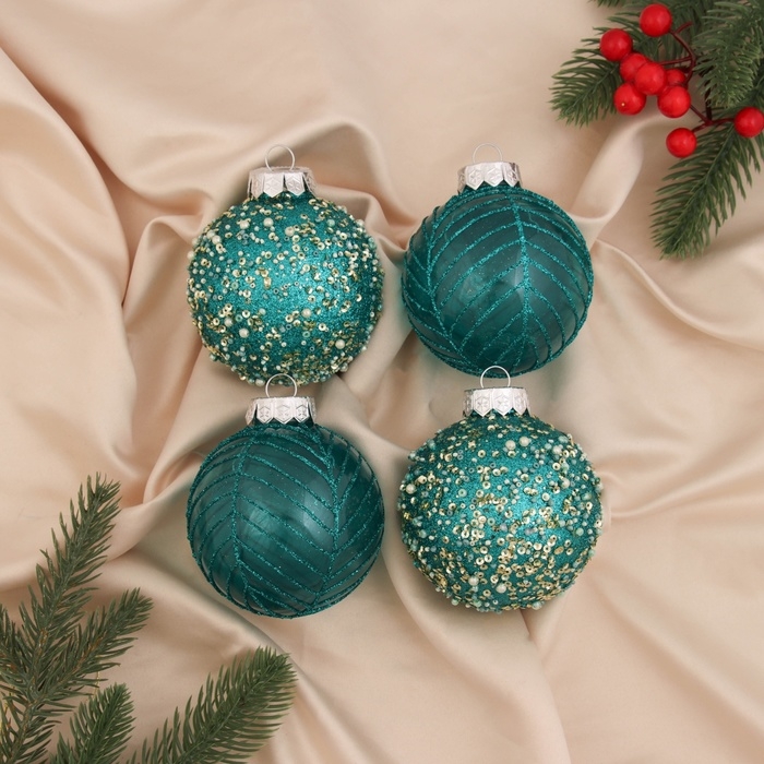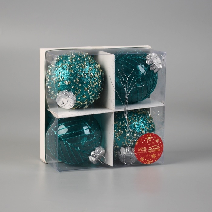 Набор шаров пластик d-8 см, 4 шт "Аустен" паутинка, бирюзовый