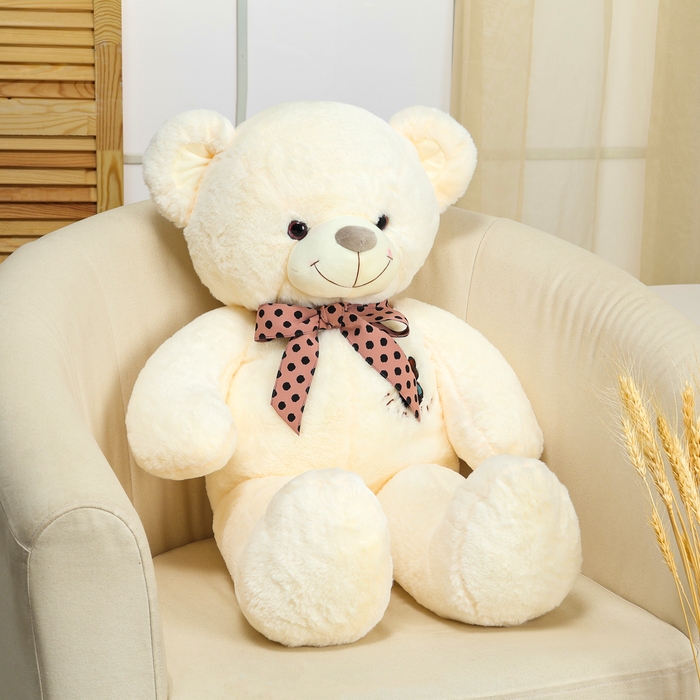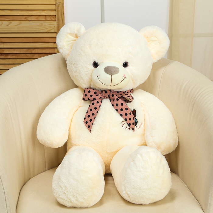 Мягкая игрушка «Мишка», с бантом в горошек, 80 см, цвет белый