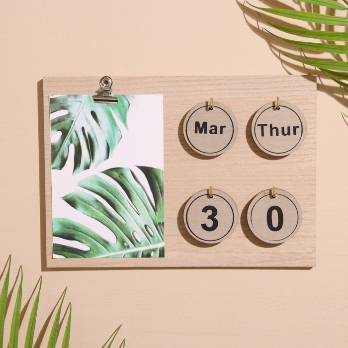 Сувенир вечный календарь с прищепкой, дерево, 23,5х23,5х17 см