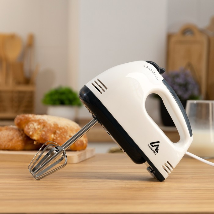 Миксер Luazon LMR-02, ручной, 180 Вт, 7 скоростей, 2 насадки, бело-чёрный