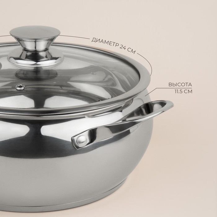 Кастрюля из нержавеющей стали SL Home «Олла», 5,2 л, d=24 см, h=11,5 см, с крышкой, капсульное дно, индукция