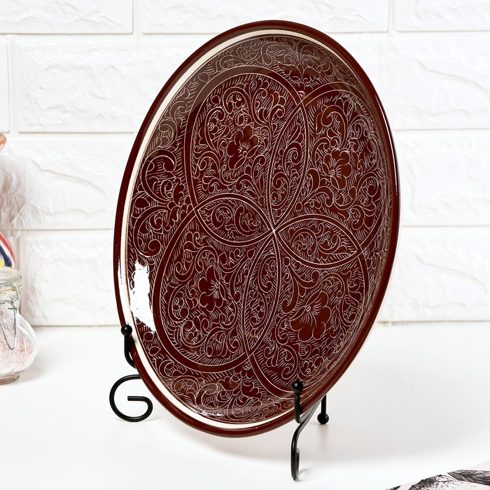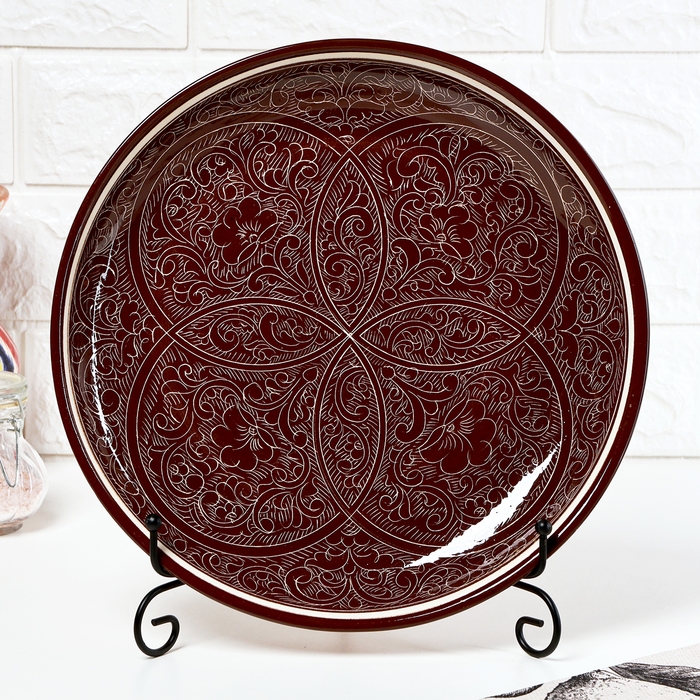 Ляган узбекский Риштанская керамика "Узоры " для плова, 28 см, в подарочной упаковке, МИКС