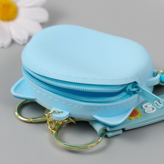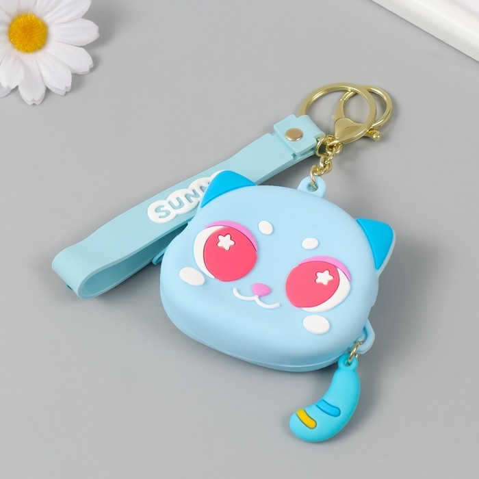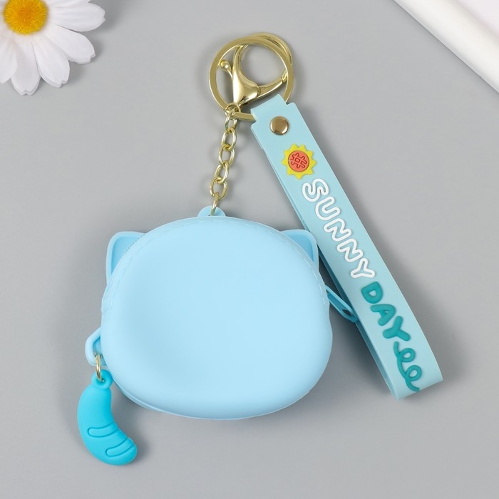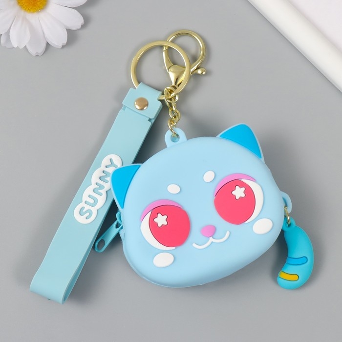 Брелок кошелёк с карабином, ремешком силикон "Котёнок лунный" 3,2х8,3х7,3 см