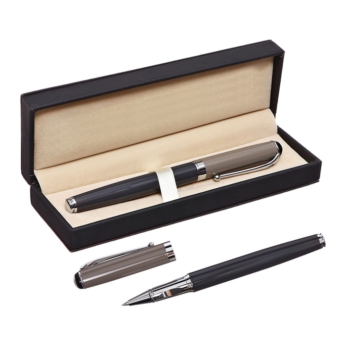 Ручка подарочная роллер в кожзам футляре Классика корпус серый/серебро