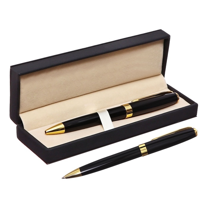 Ручка подарочная шариковая в кожзам футляре поворотная ПБ корпус черный/золото