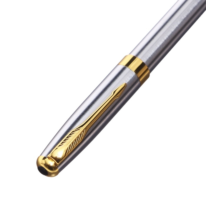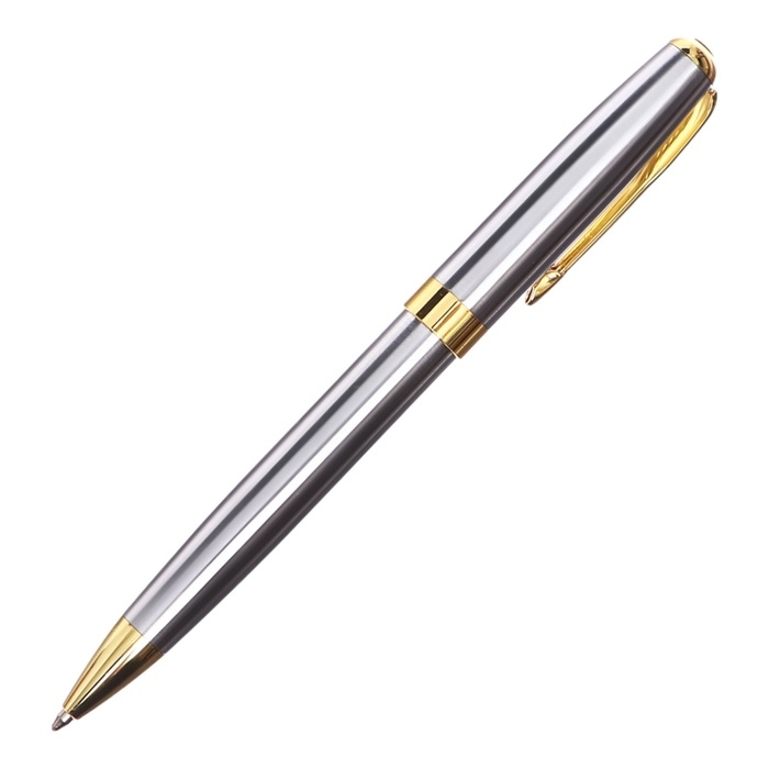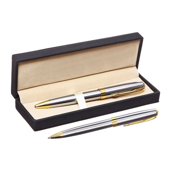 Ручка подарочная шариковая в кожзам футляре поворотная ПБ корпус серебро/золото