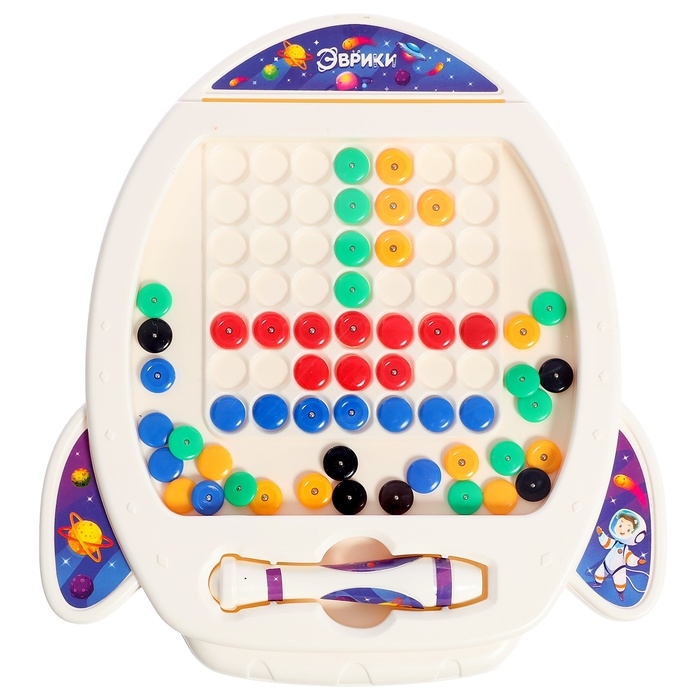 Магнитный планшет для рисования «Ракета» станет отличным инструментом для развития фантазии и координации у детей. Этот планшет позволяет создавать разнообразные изображения с помощью магнитного стилуса и разноцветных пуговок, превращая обучение в увлекательную игру.