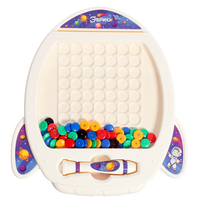 Магнитный планшет для рисования «Пуговки», большой, 10 трафаретов, 266 ячеек, 126 пуговок