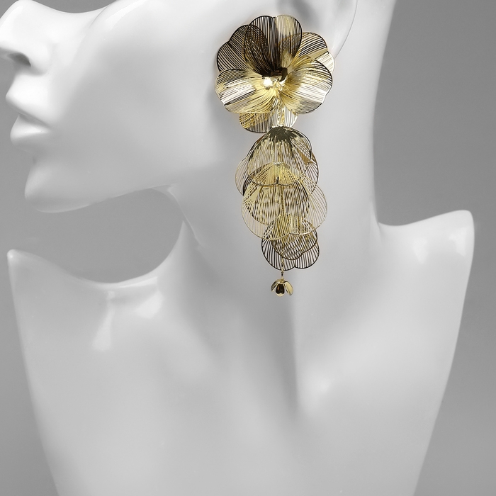 Серьги висячие «Цветок» каталея, цвет золото– это стильный и изящный аксессуар, который придаст вашему образу особую нотку романтики и элегантности.