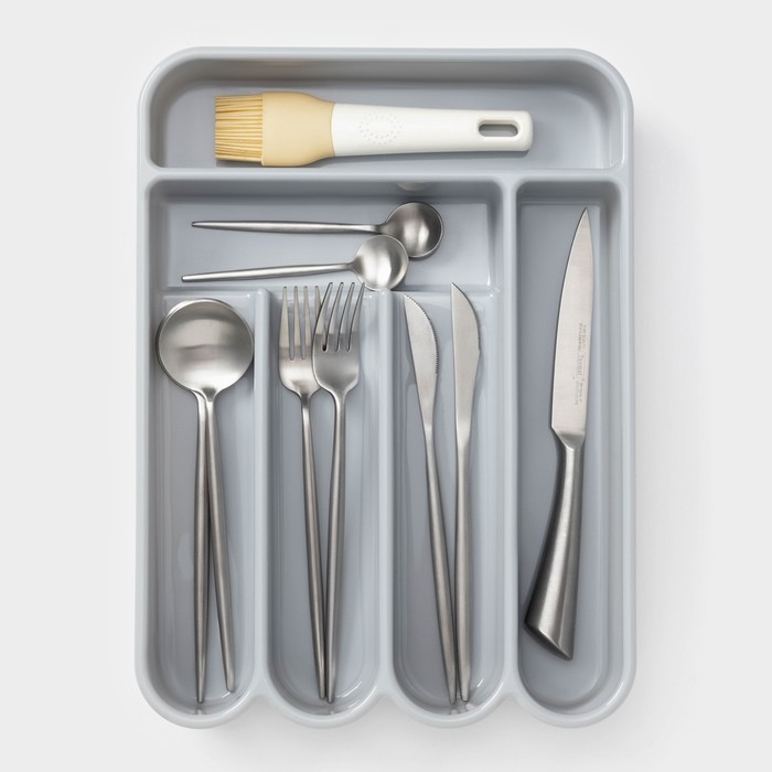 Лоток для столовых приборов, 5 отделений, 25,5×30,7×4,6 см, цвет серый