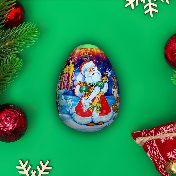 Новогодний набор глазированных конфет в подарочной упаковке в форме яйца с изображением Деда Мороза – это чарующий и оригинальный способ украсить праздники. Упаковка в виде праздничного яйца с изображением Деда Мороза сразу привлекает внимание и создает атмосферу волшебства, наполняя каждый момент праздника радостью и чудесами. Внутри этого креативного оформления спрятаны конфеты с ассорти вкусов, которые предлагают уникальное сочетание сладких и ароматных начинок, удовлетворяя самые разнообразные вкусовые предпочтения.