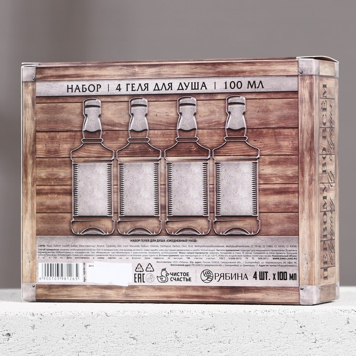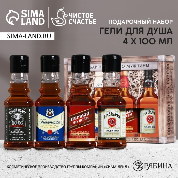 Подарочный набор косметики "Первому во всём", гель для душа во флаконе виски, 4 х 100 мл, ЧИСТОЕ СЧАСТЬЕ