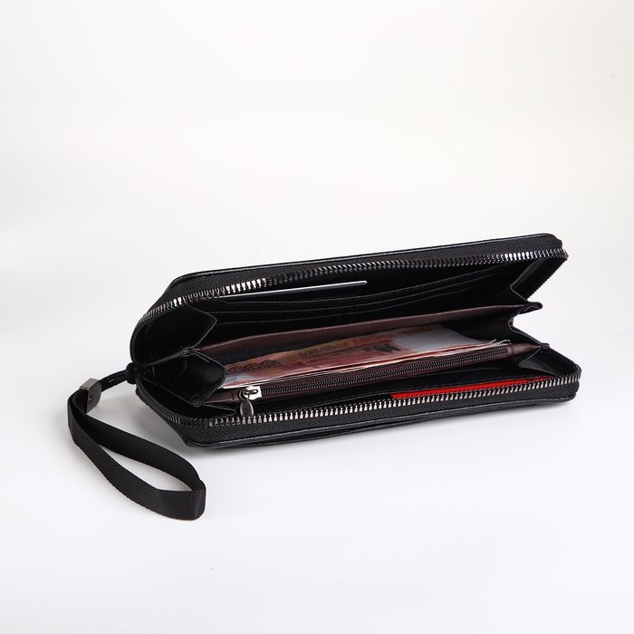 Портмоне-клатч мужской на молнии, цвет чёрный