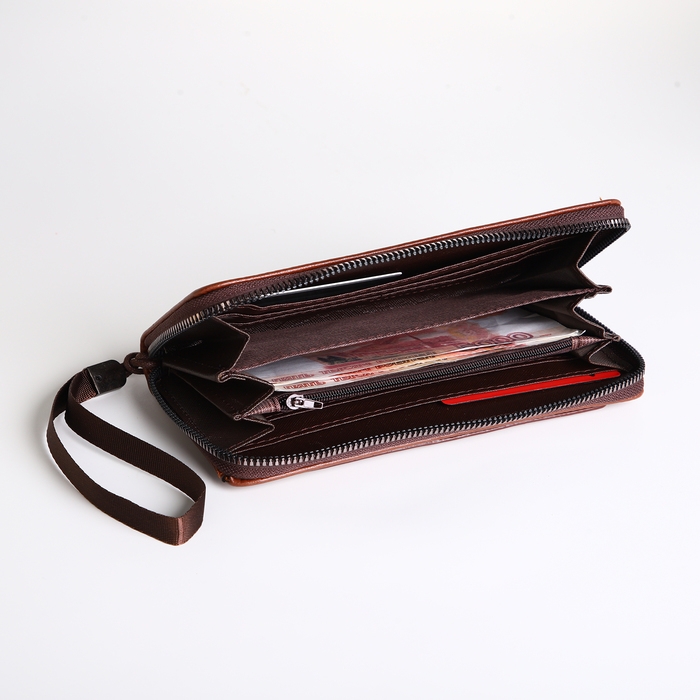 Портмоне-клатч мужской на молнии, цвет рыжий