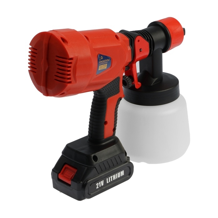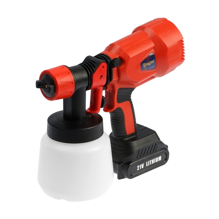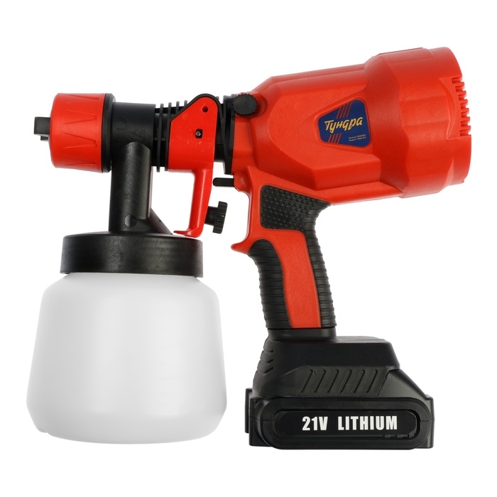 Краскопульт аккумуляторный ТУНДРА, 21 В, 800 мл, 1.5 Ач, 650 мл/мин, сопло 1.8/2.5 мм