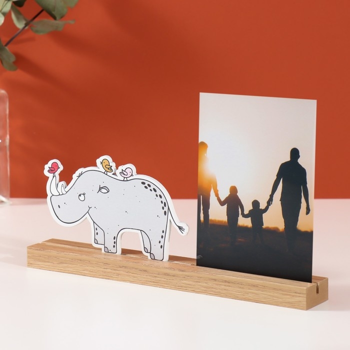 Фоторамка дерево, акрил 10х15 см "Носорог с птичками" 4х27,3х14 см