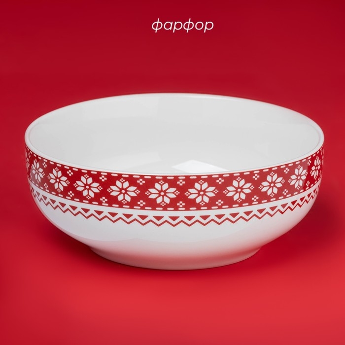 Салатник новогодний Доляна «Финский лес», 580 мл, 15,5×6 см, фарфор, цвет белый