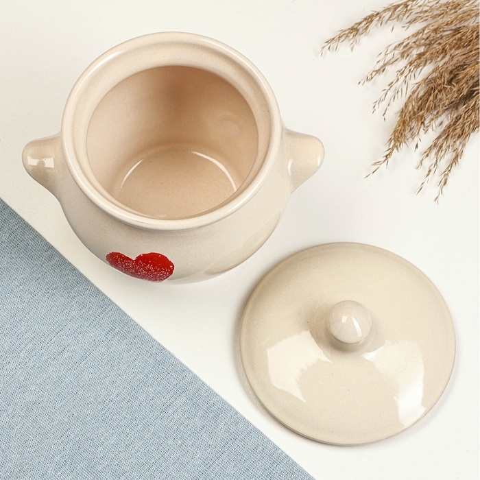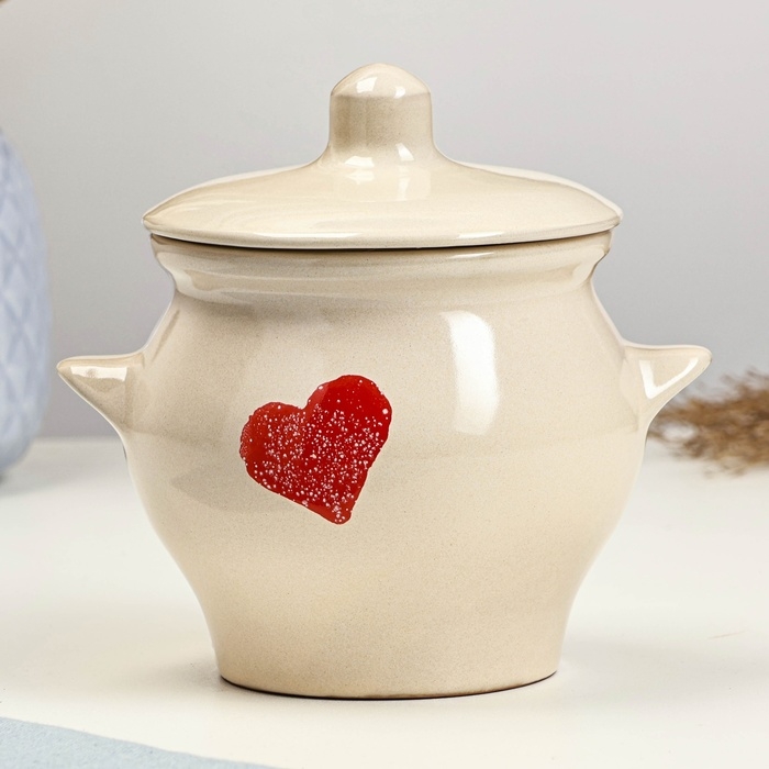 Горшок керамический для запекания №6, 0,65л / 12х12см, валентинка