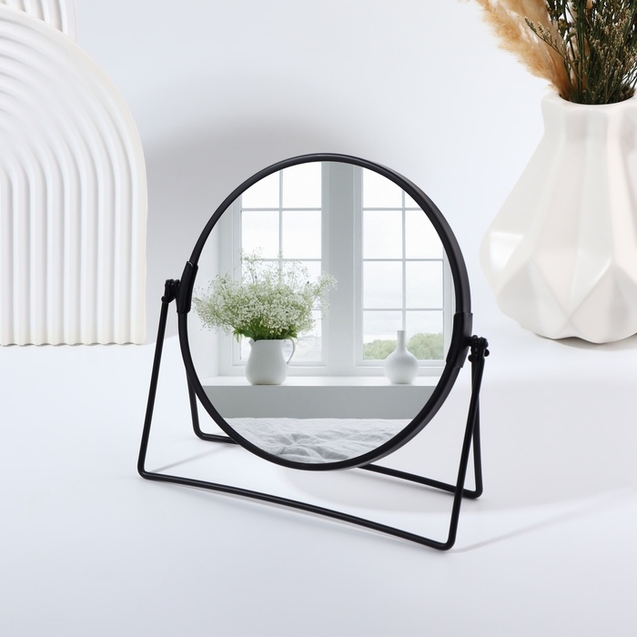 Зеркало настольное, двустороннее, с увеличением, зеркальная поверхность 11 × 15 см, цвет чёрный