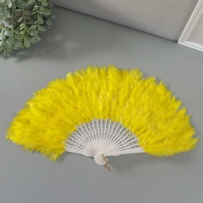 Веер пластик, перо "Жёлтый" h=26 см 25 лопастей 3х50х26 см
