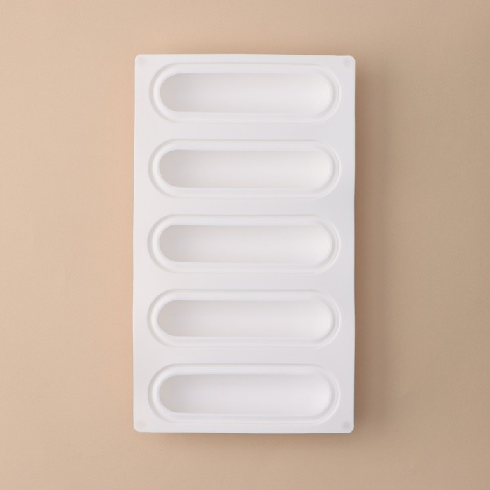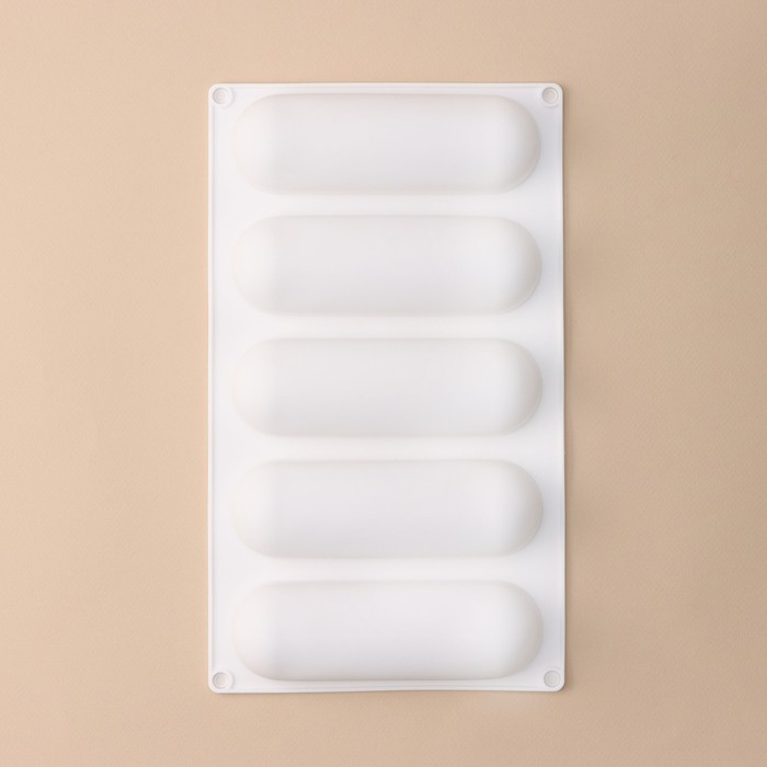 Форма для муссовых десертов и выпечки KONFINETTA «Эклер», 30×17×3 см, 5 ячеек (14,5×4,5 см), цвет белый